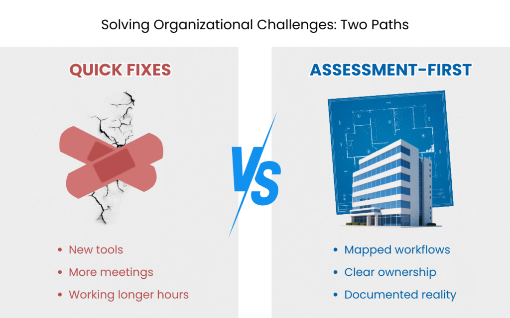 They implement new tools without understanding their current workflows. They set priorities without knowing their actual stakeholder landscape. They create processes without documenting their current reality.